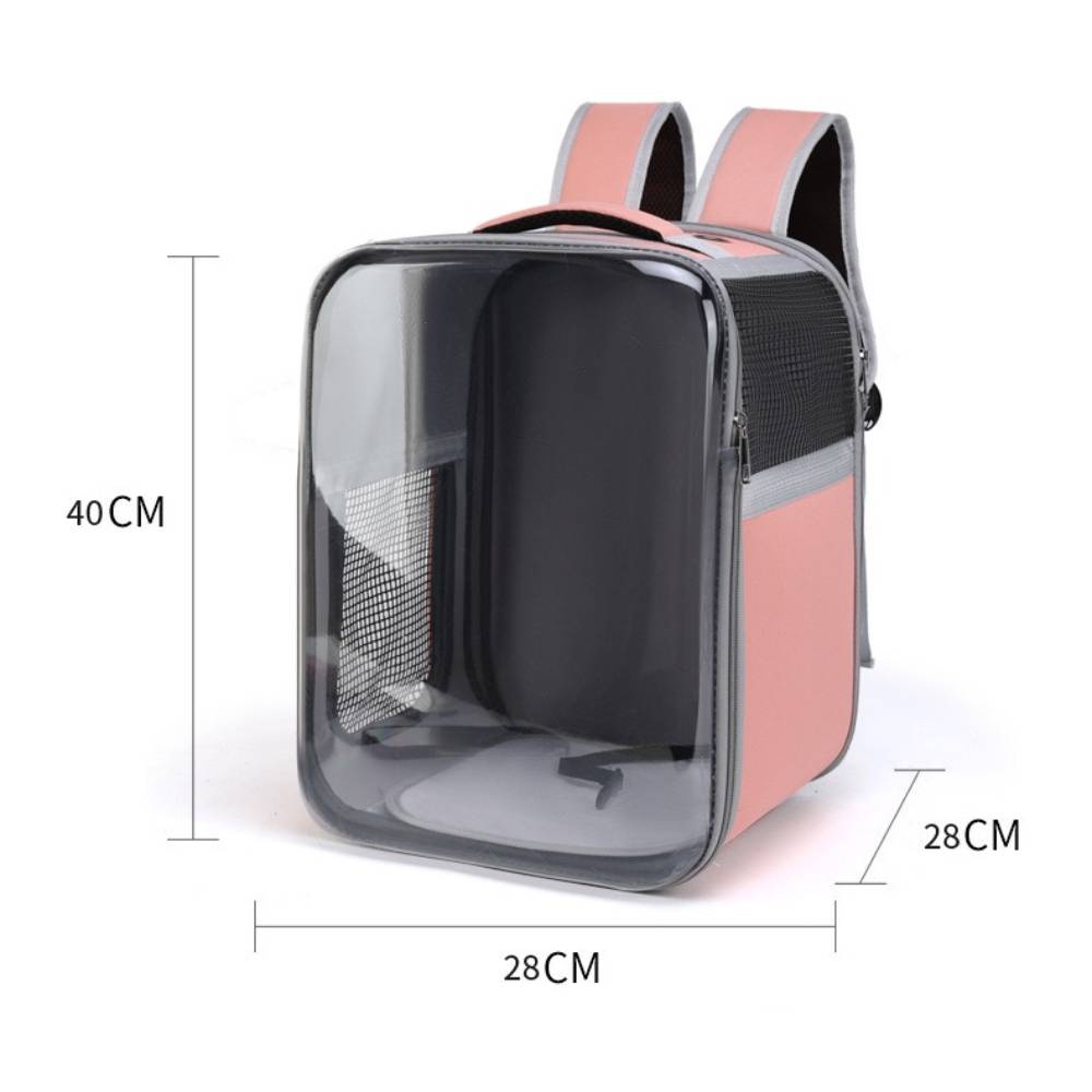 Thiết kế balo trong suốt dạng chữ nhật, dễ quan sát thú cưng bên trong.