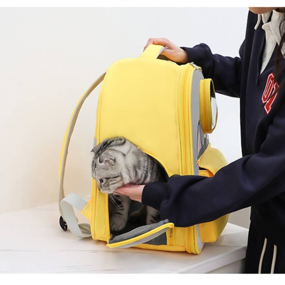 Mở khoá kéo, đặt thú cưng vào nhẹ nhàng.