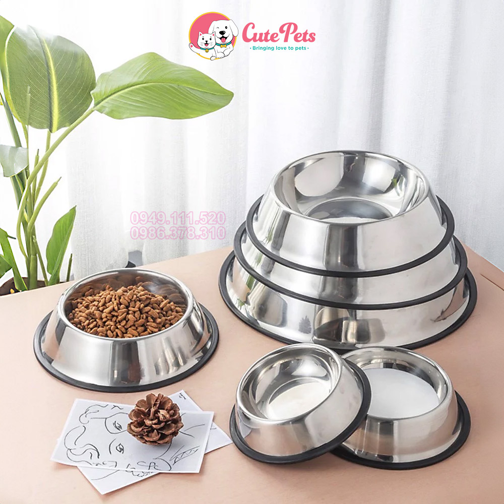 Bát cho chó mèo bát inox đế cao su chống trượt cho thú cưng nhiều size - CutePets
