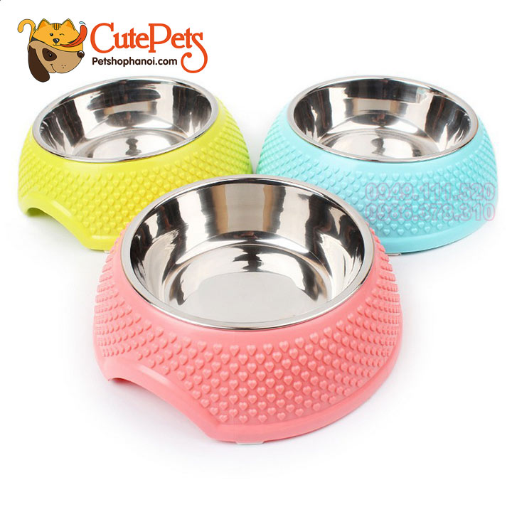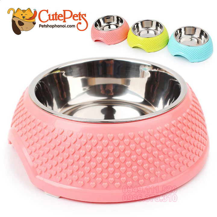 Bát nhựa lõi inox họa tiết tim dành cho thú cưng - CutePets