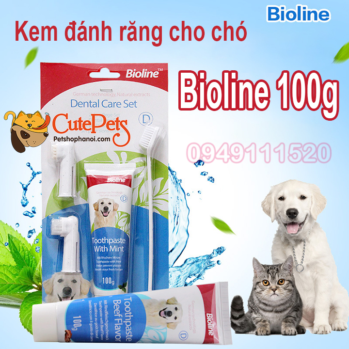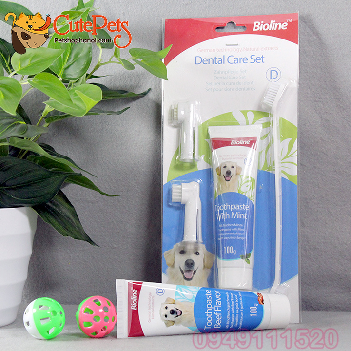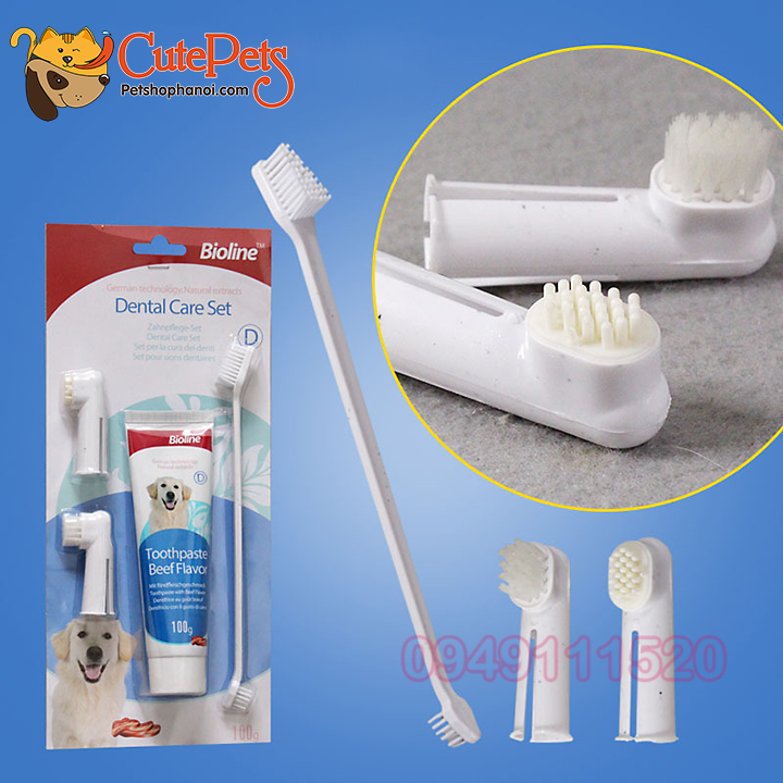 Bộ Kem đánh răng cho chó Bioline 100g + Bàn chải - CutePets