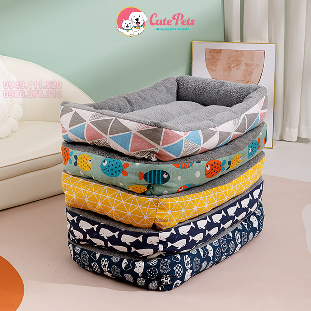 Đệm cho chó mèo họa tiết chữ nhật ổ nệm cho thú cưng - Cutepets