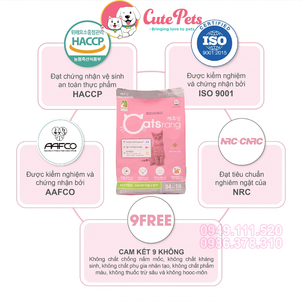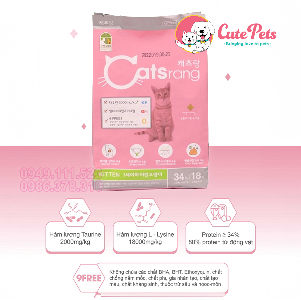 Thức Ăn Cho Mèo Con Catsrang Kitten 400g là dòng thức ăn dành riêng cho mèo nhỏ được nhập khẩu trực tiếp từ Hàn Quốc và được nghiên cứu là phù hợp với sự phát triển của mèo con.