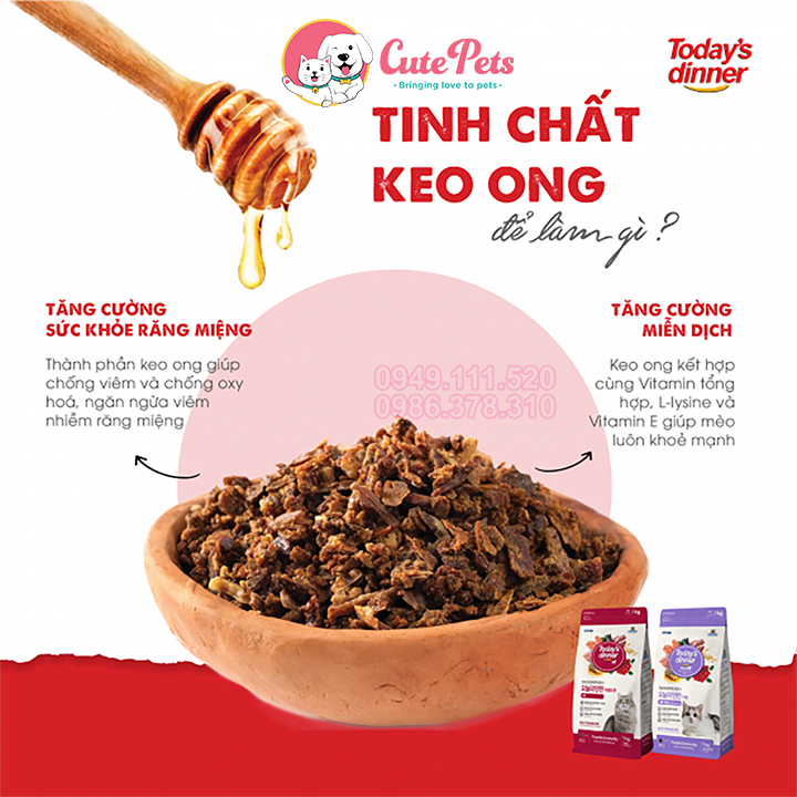 - Thức ăn hạt chứa thành phần keo ong bổ dưỡng giúp tăng đề kháng và chống viêm nhiễm răng miệng