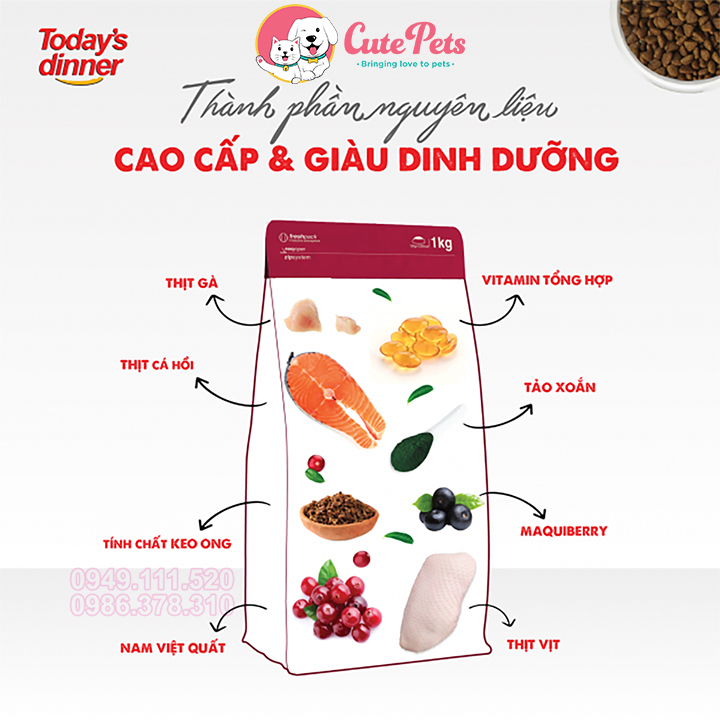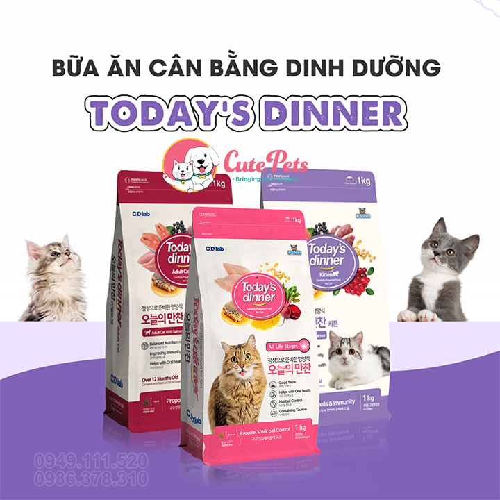 Hạt cho Mèo Today Dinner 1kg Cân bằng dinh dưỡng - Cutepets