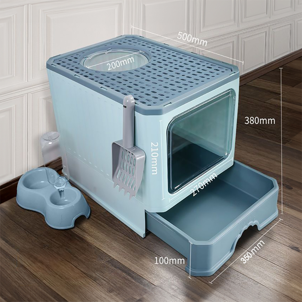 Nhà vệ sinh mèo gấp gọn chữ nhật 51x38x37cm tặng kèm xẻng - Cutepets