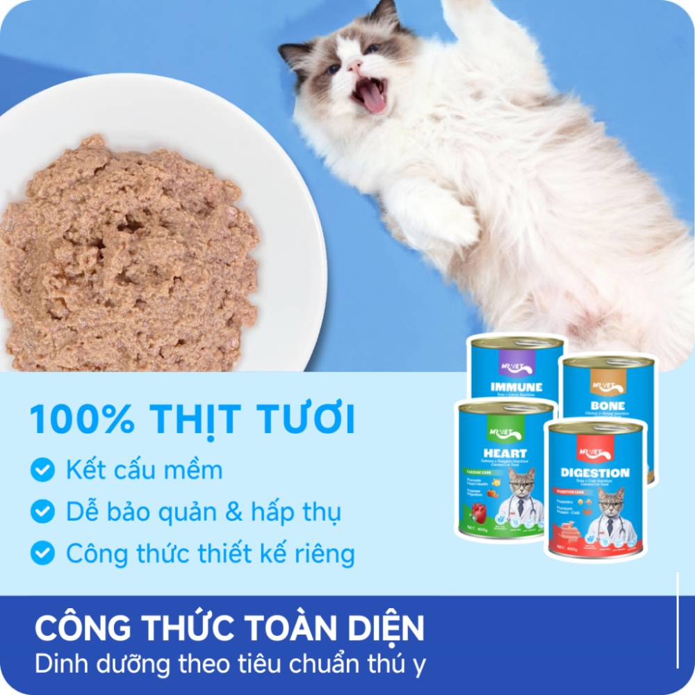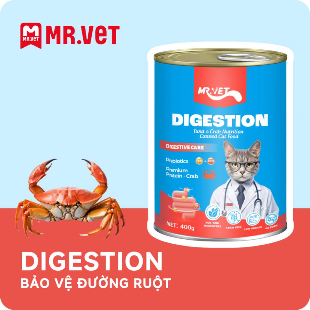 🐟 Pate cho mèo Mr.Vet Digestion Cá Ngừ & Cua Lon 400g – CutePets