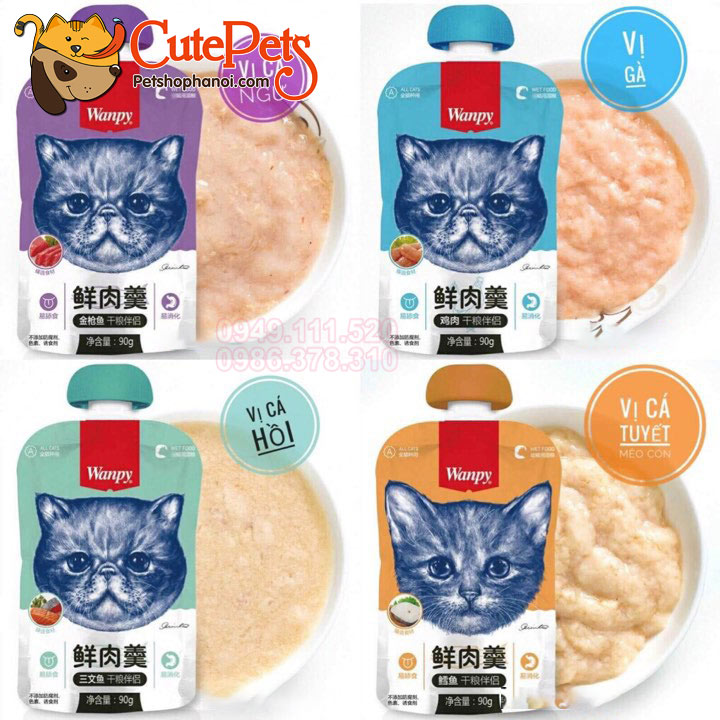 Pate tuýp WANPY dạng pate mịn, thay đổi khẩu vị giúp mèo ăn ngon miệng hơn, giảm lượng thức ăn khô, bổ sung chất dinh dưỡng