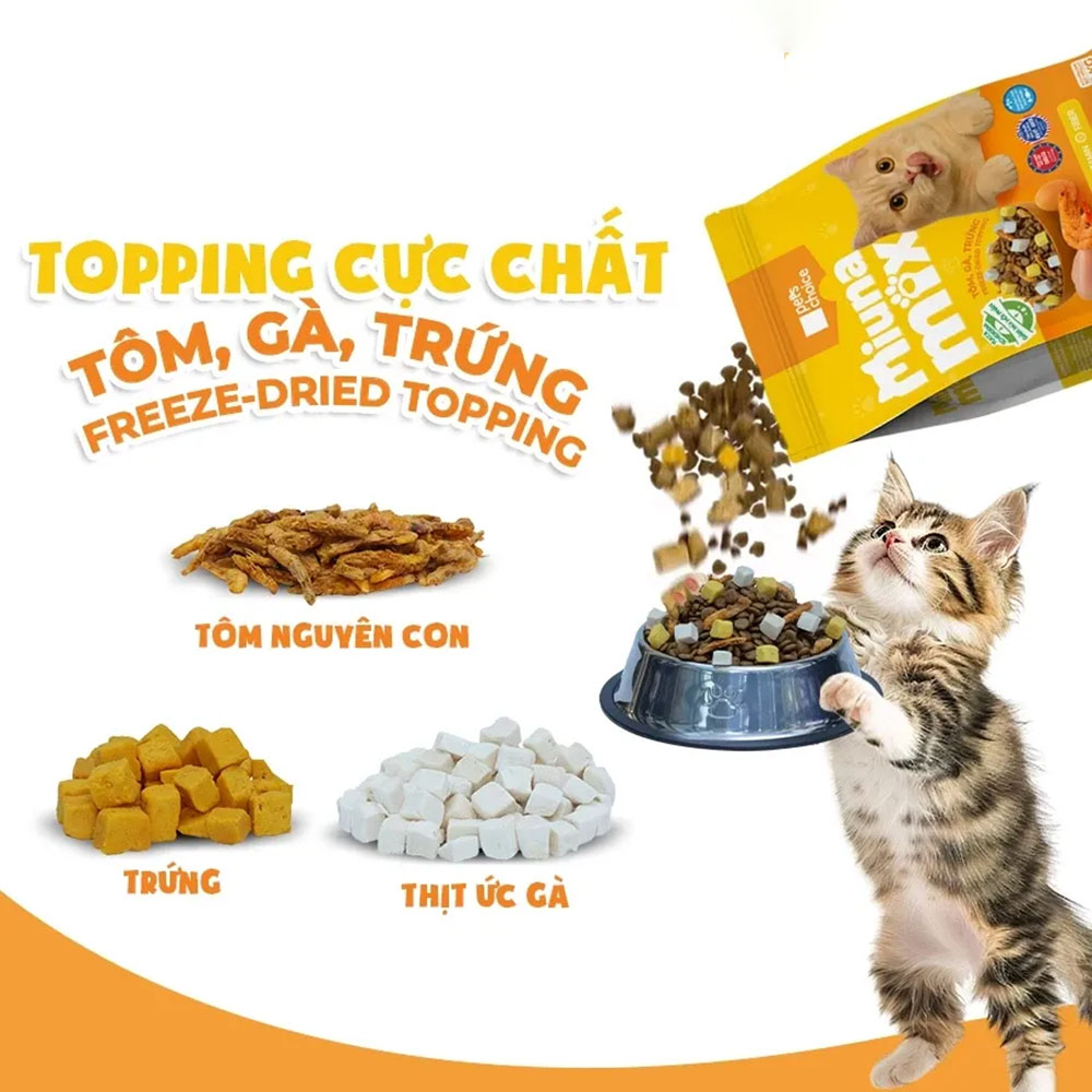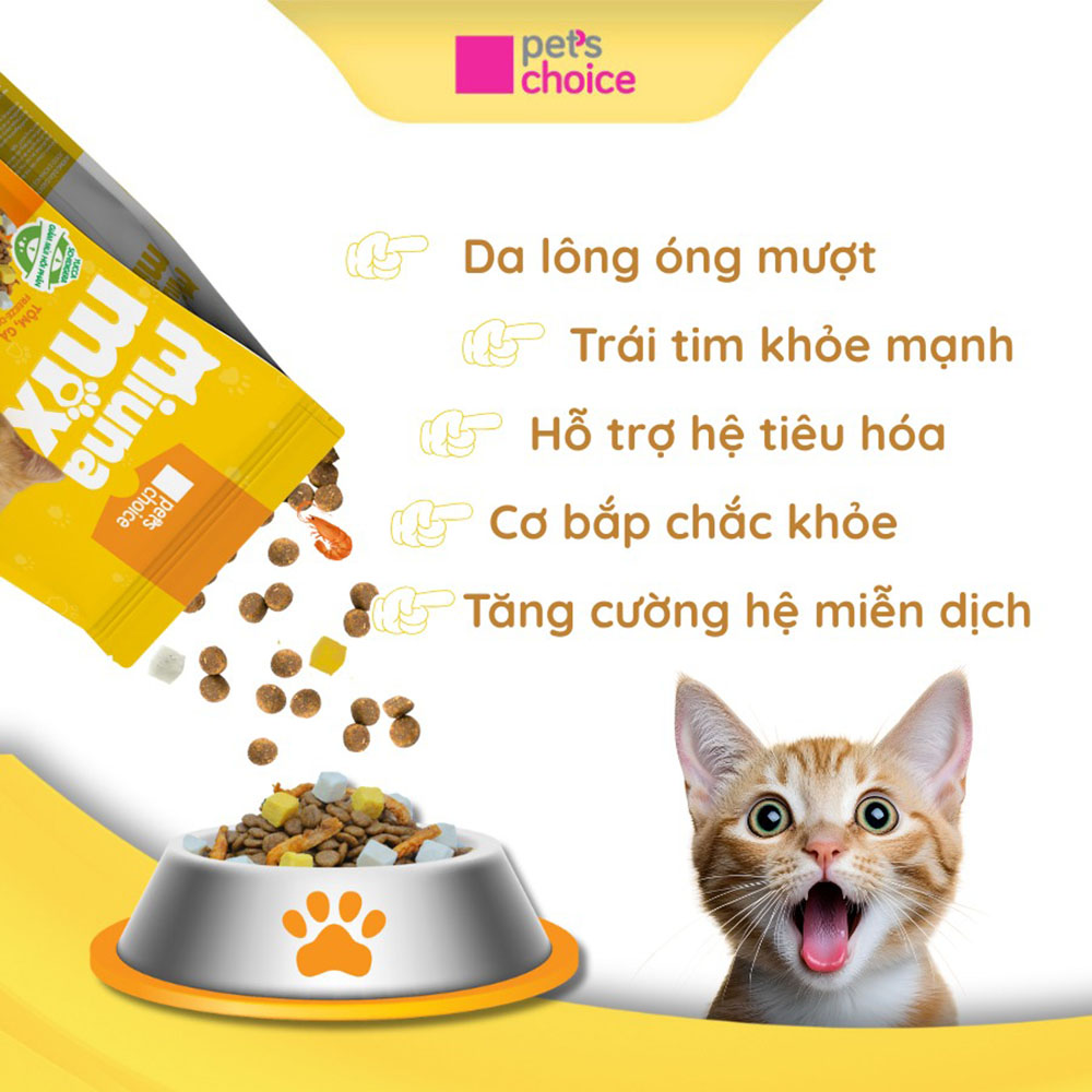 🐟 Hỗn hợp nhiều vị thơm ngon: Thịt – cá – hải sản giúp tăng vị giác, phù hợp cả những bé mèo kén ăn.