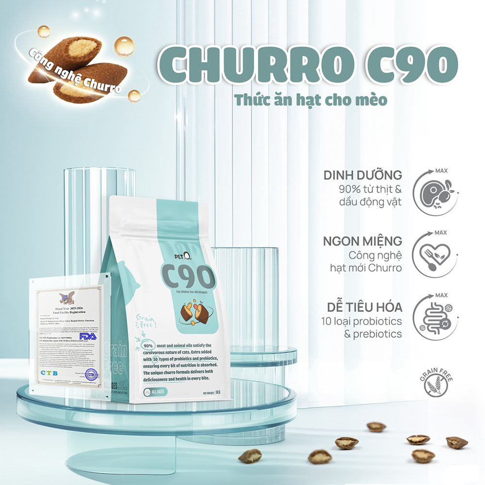 Tên sản phẩm: Thức ăn hạt cao cấp cho mèo Churro C90 – PetQ