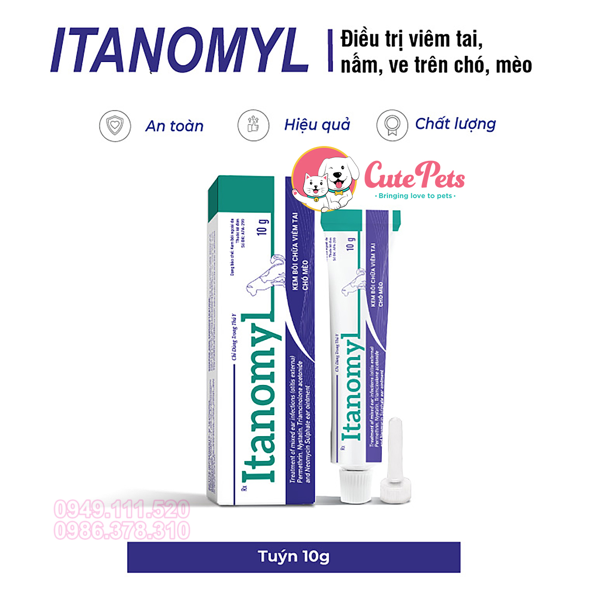 Trị Viêm, nấm, rận tai Itanomyl 10g cho chó mèo - Cutepets